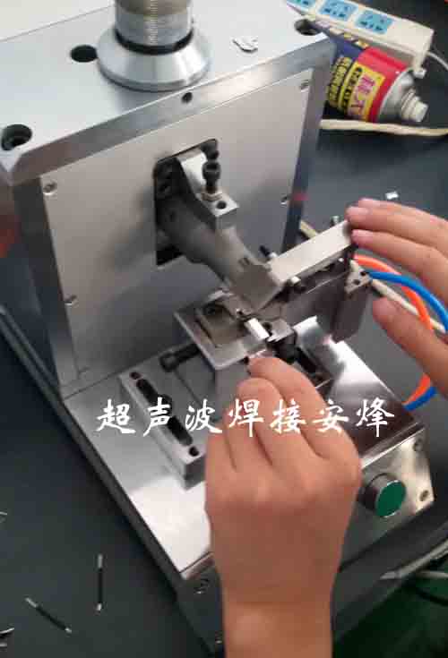 保险管引脚与多股铜线超声波焊接机使用超声波焊接工艺,用超声波金属点焊机焊接成型,不会压断线束以及保险管内部结构。 保险管引脚与多股铜线超声波焊接样品图片 保险管引脚与多股铜线超声波焊接后强度牢固,焊接拉拔力测试符合客户的要求。 将其两端搭接进行超声波焊接。 人工放入保险管引脚与多股铜线进行超声波焊接。 保险管引脚与多股铜线超声波焊接机设备质保1年,超声波模具质保三个月,整机终身维护。