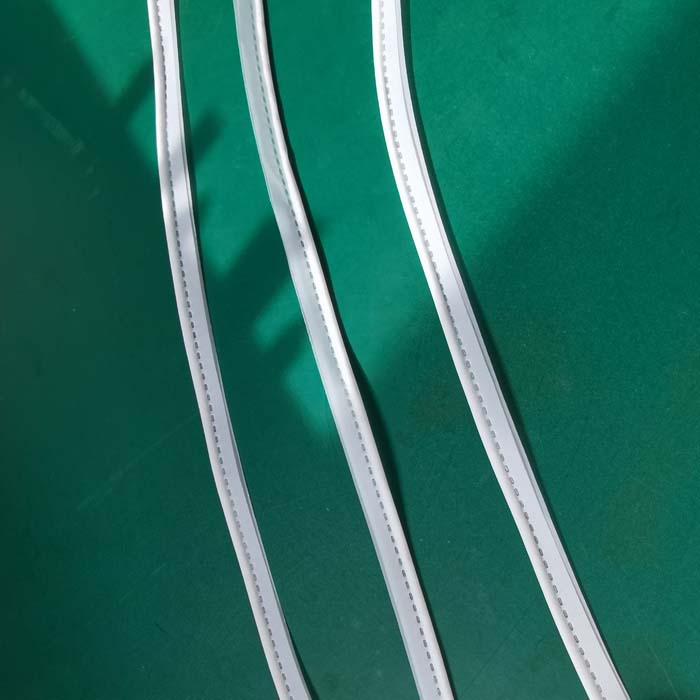 涤纶布条与棉线包边焊接超声波压花机是利用超声波工艺进行焊接的,将布条包住绳子封边连续焊接成型,超声波滚轮焊接效果牢固,适合用20K2000W超声波压花机包边焊接。 涤纶布条与棉线超声波包边焊接效果图片 涤纶布条与棉线超声波包边焊接后,强度效果经过测试符合客户的焊接需求。 超声波模具和滚轴根据涤纶布条与棉线超声波包边焊接效果设计,采用钢热处理材质,人工放取依次进行超声波焊接生产。 涤纶布条与棉线包边焊接超声波压花机设备质保1年,超声波模具质保3个月,整机终身维护。
