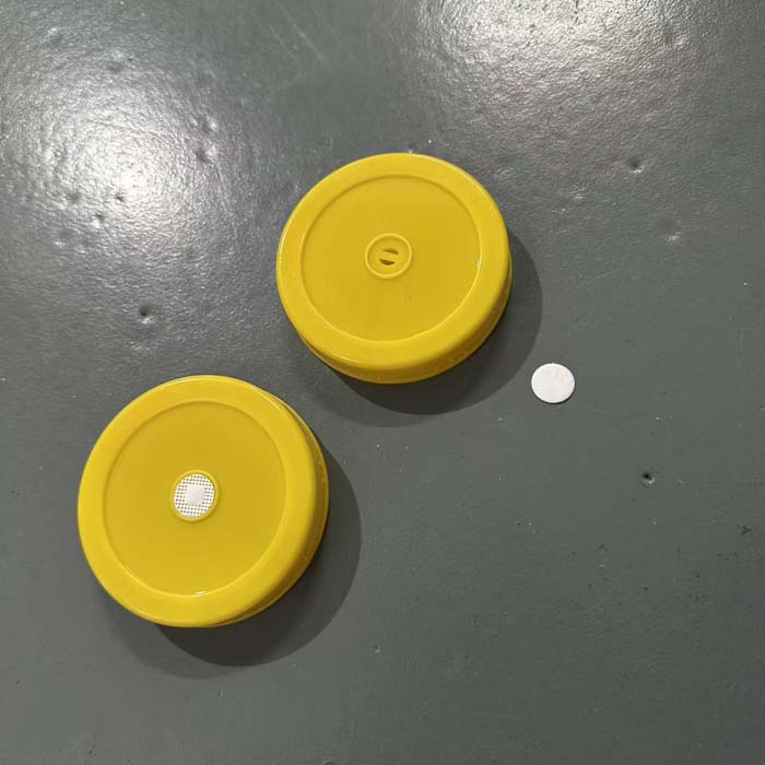 大小不同组培瓶盖与无纺布透气膜超声波压合焊接效果图片