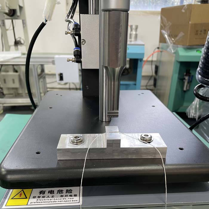非常细的涤纶线绳定位28K800W小型点带机是利用超声波工艺进行焊接的,将涤纶线头尾搭接焊定位成型,超声波焊接效果牢固,适合用28K800W气缸式超声波点焊机焊接。 细的涤纶线绳定位超声波点焊效果图片 细的涤纶线绳定位超声波点焊后,强度经过测试满足客户的焊接需求。 根据细的涤纶线绳搭接定位超声波点焊效果设计相应的超声波点焊头,采用钛合金材质,依次进行超声波焊接生产。 非常细的涤纶线绳定位28K800W小型点带机设备质保1年,超声波模具质保三个月,整机终身维护。