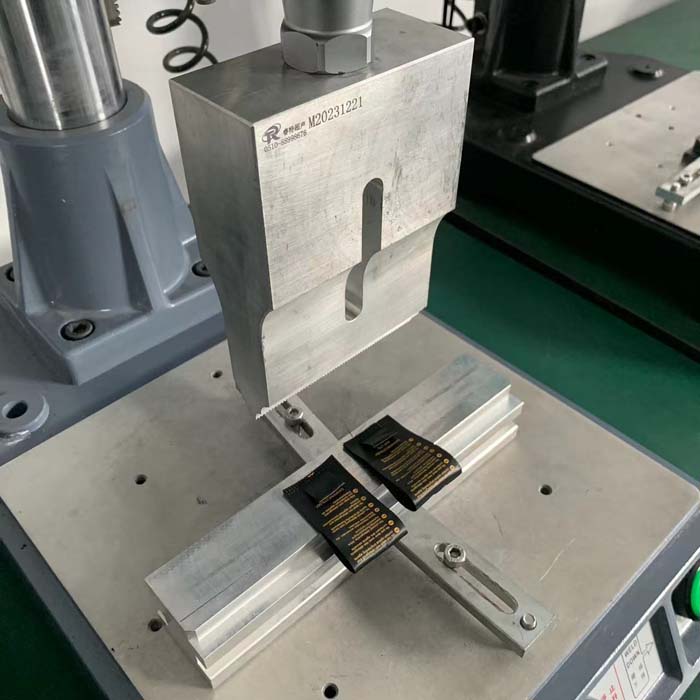 服装商标水洗唛4层焊接15K超声波点标机是利用超声波工艺进行焊接的,将宽窄不同的水洗标叠加4层焊接定位,超声波焊接效果牢固,适合用15K2600W超声波塑料焊接设备焊接。 服装商标水洗唛4层超声波焊接效果图片 服装商标水洗唛4层超声波焊接后,强度经过测试满足客户的焊接需求。 超声波模具和底模根据服装商标水洗唛超声波焊接效果设计,采用航空铝材质,人工放取依次进行超声波焊接生产。 服装商标水洗唛4层焊接15K超声波点标机设备质保1年,超声波模具质保3个月,整机终身维护。