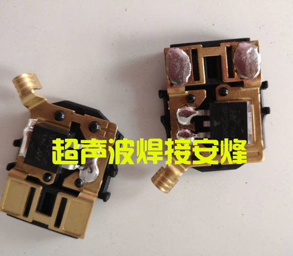 光伏组件铜片与塑料实心柱热熔铆点焊接效果图片