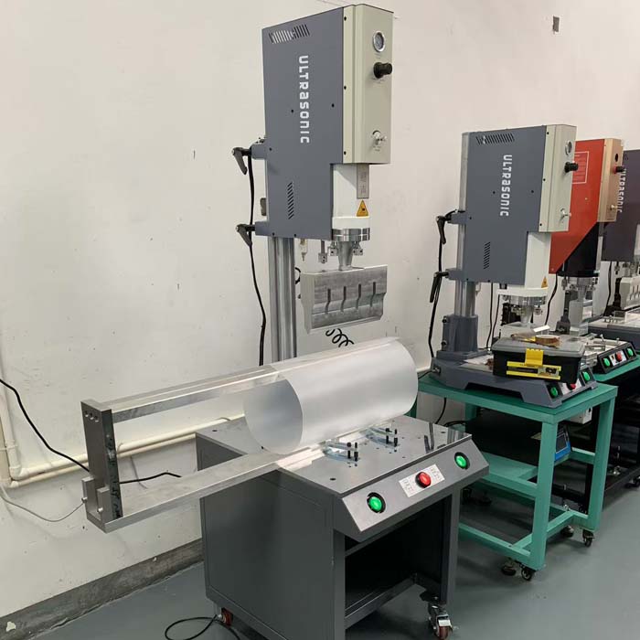 3mm厚pet片90cm长圆筒分段式焊接3200W落地式超声波塑焊机是利用超声波工艺进行焊接的,将pet片材卷焊成圆筒型,90cm长分3次焊接完成,超声波焊接效果牢固,适合用15K3200W落地式超声波塑料焊接设备焊接。