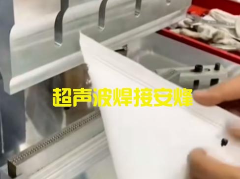 聚丙烯pp长无纺布4200W超声波压合焊接机是利用超声波工艺进行焊接的,将pp长无纺布焊接成型,超声波塑料焊接效果牢固,适合用15K4200W超声波塑料焊接设备焊接。 聚丙烯pp长无纺布4200W超声波压合焊接效果图片 聚丙烯pp长无纺布4200W超声波压合焊接后,强度与外观经过测试达到客户的要求。 超声波模具根据无纺布焊接要求设计,采用航空铝材质,人工放取依次进行超声波焊接生产。 聚丙烯pp长无纺布4200W超声波压合焊接机设备质保1年,超声波模具质保3个月,整机终身维护。