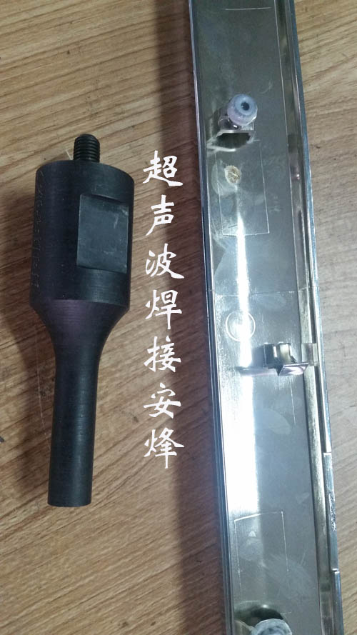 第一步,我们在拿到超声波模具的时候,首先要把连接螺丝拧到底,然后安装在超声波换能器上,如下图。