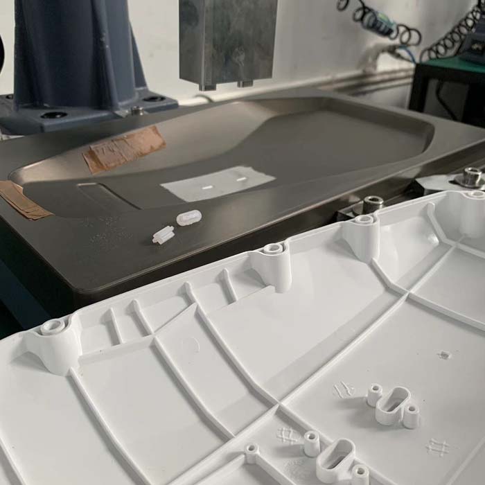 超声波模具和底模根据新能源汽车充电桩导光柱一出二的焊接方式进行设计,采用航空铝材质,人工放取依次进行超声波焊接生产。
